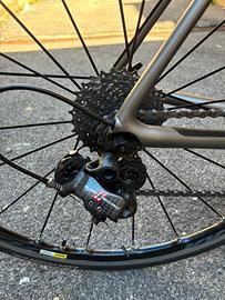 Telaio Carbonio Ultralight 500 Series OCLV, gruppo Campagnolo Super Record 11v con cassetta 11/29, guarnitura 50/34, cerchi Mavic alluminio Ksyrium Elite, freni Bontrager Speed Stop, meccanicamente perfetta, revisionata da poco con sostituzione catena, vendo per inutilizzo, visione e consegna brevi mano zona Roma Aurelia/Portuense.