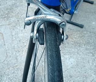 bici telaio Colledani alluminio ,forcella sterzo integrato carbonio. adatta per altezza 1,75/185. io sono 180. gruppo campagnolo veloce 9v ,cassetta 11/26 , corone 53/39 massima precisione di cambiata. bici tenuta in modo maniacale, praticamente quasi senza un graffio ed evitato uscite con pioggia. copertoni con pochi km 500 circa. prezzo leggermente trattabile.