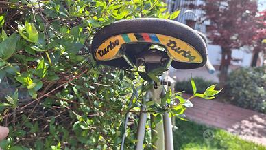 La bici, ferma in box da oltre 20 anni, richiede un po' di manutenzione e la sostituzione dei componenti soggetti a usura (tubolari, pastiglie e fili dei freni, ...).