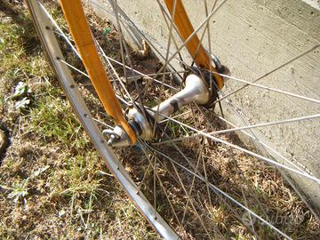 cedo bici corsa vintage Imperial super leggera misura da centro canna manubrio a centro canna sella 54cm da centro mozzo pedali a bordo reggisella 53cm mozzi ruote campagnolo cerchi Nisi cambio e leve campagnolo femacavi marcato campagnolo freni universal super 68 con sgancio rapido movimento centrale ofmega alluminio sostituito manubrio da corsa con manubrio alto per usare la bici modalità riposo in alluminio marca 3ttt 2 cerchi nisi con tubolare montato in regalo non presenti in foto contattare solo se realmente interessati il 3497810453 per cortesia no perditempo solo consegna a mano