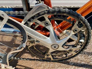 Ramatura e decalcomanie conservate. Telaio Columbus. Serie sterzo e gruppo cambio Ofmega Mistral. Montata da Fausto Bertoglio, vincitore del Giro d'Italia 1975.