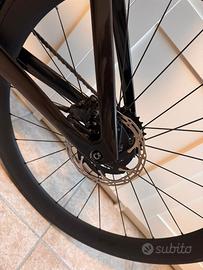 Trek Speed Concept anno 2025 Telaio in Carbonio OCLV di alta gamma Forcella SC full foil carbon, freno e attacco manubrio integrati Trek Speed Concept taglia S Nero Lucido (Gloss Black) Batteria SRAM AXS (con caricabatterie) Trasmissione SRAM Force eTap AXS a 12 velocità Cambio SRAM eTap AXS Wireless Blip, montati sul manubrio e sulle estensioni Pedivelle 165mm integrate con un misuratore di potenza Quark Guarnitura con corone 48/35T e cassetta posteriore a 12 velocità 10-33 Ruote in carbonio Bontrager Aeolus pro 51Di Dischi Sram force da 160mm Monta un cockpit integrato specifico per la Speed Concept con appendici regolabili in lunghezza ed inclinazione e pulsanti di cambiata SRAM Blips Sella Hilo Pro Carbon Bici perfetta - cerchi e appendici mai usati (montavo altro)