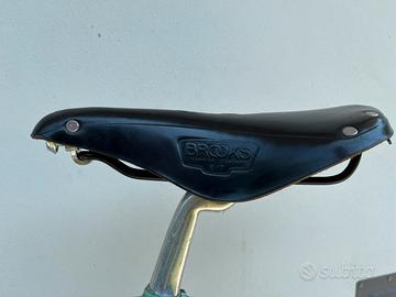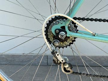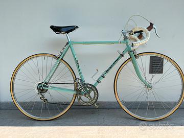 Vendo splendida bicicletta da corsa d’epoca Bianchi, perfetta per partecipare a manifestazioni ciclostoriche come L’Eroica. Verniciatura originale in celeste Bianchi, componentistica coerente con l’epoca e in ottimo stato.