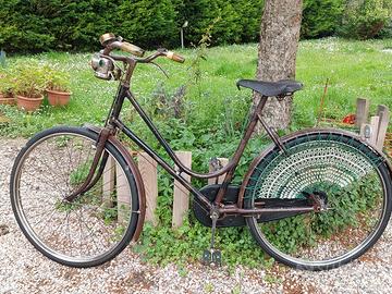 splendida bici donna Mora Legnago anni 20 / 30 costruita da Bortolo Mora nel suo negozio in centro a Legnago , smontata completamente rifatte sfere , pedali, carterone, paragonna in seta , manopole due pezzi osso , possibile fanale olio Lucas, di un livello all'epoca superiore alla norma.