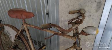 Vendo bici d'epoca da restaurare ma integra in tutti i suoi particolari, faro giallo anteriore ,impianto originale, freni .