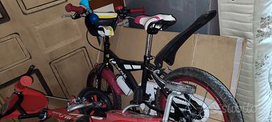 Bicicletta da 16 pollici per bimbo o bimba modello chicane by schiano. la prima foto è indicativa del modello, la seconda è la bici reale. è di colore nero con inserti color vinaccia. poco usata e ben tenuta. ha solo un piccolo foro sul sellino dovuto a sosta prolungata in garage con altri oggetti.