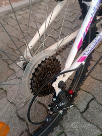 vendo bicicletta semi nuova da bambina da 6 a 10 anni di età. Con ammortizzatori anteriori, e a 18 rapporti,3 anteriori e 6 posteriori.
