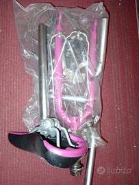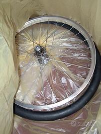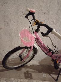 Vendo bici da bambina dai 8/9 anni come in foto completa di campanello e cestino e copertoni nuovi e caschetto (luce dietro non in vendita)con alcuni pezzi di ricambio, camere d'aria forcella davanti e altri pezzi 120