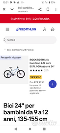 Bici Rockrider st 900 con ruota da 24 " Freni a disco, forcella ammortizzata frontale.