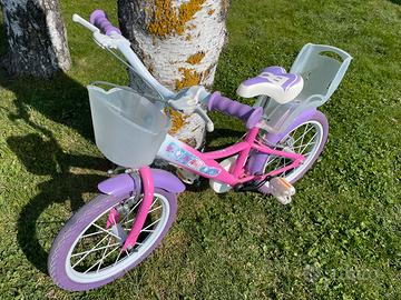 Bicicletta Bimba 16'' - Modello Winx - con le rotelle, come nuova. Vendo splendida bicicletta da bambina misura 16 pollici (ideale indicativamente per un'età compresa tra i 4 e i 6 anni). La bici è in condizioni eccellenti, come si può vedere dalle foto, ed è pronta all'uso. Caratteristiche principali: • Design: Telaio rosa e viola con grafiche originali "Winx". • Accessori inclusi: Pratico cestino anteriore bianco e seggiolino posteriore porta-bambola (fondamentale per le piccole avventure!). • Sicurezza: Copricatena integrale per evitare graffi o sporco e parafanghi abbinati. • Dettagli: Ruote e manopole viola in tinta con il telaio. La bici è sempre stata tenuta al coperto.