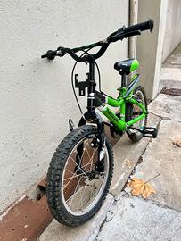 Ottima bicicletta da 16 pollici marca Kawasaki, perfetta per bambino 4-8 anni. Condizioni buone, copertoni al 65%, freni buoni, la bici è a posto, ritiro a mano a Reggio Emilia.