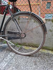Bellissima bicicletta da città, marca Cerez, direi degli anni 50/60. Freni a bacchetta (manca io freno anteriore), manubrio in ottime condizioni, sella pure. Cerchio posteriore ha un difetto, da cambiare, ancora funzionante ma per poco, camera d’aria e pneumatico bucati (posteriore). cerchio anteriore impeccabile. Bici perfetta per la città. Per maggior informazioni, dubbi o foto contattarmi senza problemi.