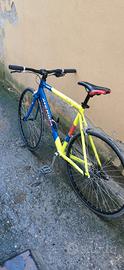 montata secondo i miei gusti. Monta corona singola da 48denti, pinze freni 'shimano sora', manubrio largo 64 cm (KTM) , deragliatore btwin, cambio 8 rapporti, sellino (KTM) con qualche crepa dovuto al tempo. Monta copertoni 700x28c. La bici in origine era blu rossa e bianca ma siccome in alcune parti era parecchio rovinato il colore lho riverniciata di giallo fluo... La bici presenta qualche imperfezione estetica di qua e di là dovuta agli anni ma rimane un mezzo comodo e veloce per spostarsi. Vendo in quanto ho perso la passione e mi occupa spazio.