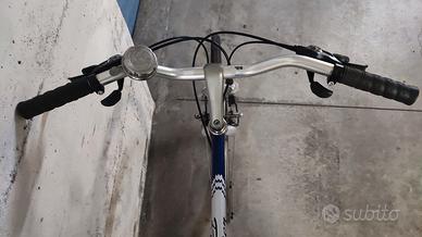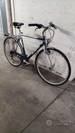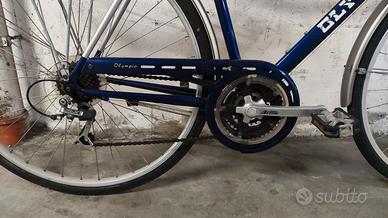 Bici Olympia da città da uomo, cambio a 21 rapporti Shimano Acera, freni cantilever, cerchi in alluminio da 28”, manubrio con pipa regolabile, ruote con sgancio rapido, reggisella con regolazione rapida, sellino molleggiato, completa di luci a dinamo, portapacchi posteriore, campanello e cavalletto, appena revisionata, vendesi a 100 euro.