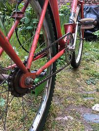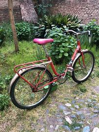 La bicicletta è una classica graziella pieghevole con ruote da 24 pollici e copertoni neri 24 X 1.75 tassellati comodi sia su asfalto che su strade sterrate. Dal punto di vista meccanico è perfettamente funzionante: camere d’aria e copertoni appena sostituiti, sede sterzo e freni rimessi a nuovo catena pulita e oliata. Bici economica ma perfetta per l’uso cittadino.