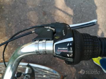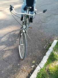 Bicicletta classica molto leggera, con cambio Shimano a 6 velocità, telaio acciaio verniciatura originale, equipaggiata con portapacchi posteriore ( ESCLUSO seggiolino per bambini), specchietto retrovisore, cavalletto, parafanghi e campanello.