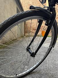 Bicicletta comprata nel 2022 da Decathlon, come nuova. Usata pochissime volte, gomme appena cambiate, freni nuovi, luci nuove, campanello. Inclusa catena antifurto.