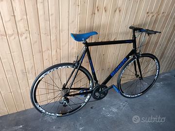 vendesi bici da corsa nuova mai usata lo assemblata io personalmente segliendo solo i componenti migliori. la bici e composta cosi gruppo completo shimano tiagra ruote mavic in alluminio coperture ed camere michelin pedali flat sella blb blu manubrio fixed blu sempre blb. vendo per passaggio a mtb se interessati contattare la ciclofficina elios riparazioni bicilette personalizzate al 375 783 1195 solo vermente interessati.