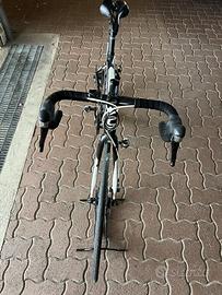 Vendo bici da corsa ben tenuta per passaggio a modello superiore. Cambio 3x11 freni a disco, copertoni nuovi. Adatta ad in altezza massimo da 170-172 cm. La bici monta pedali da mountain bike