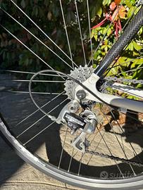 Vendo bici per chi si vuole affacciare al mondo del ciclismo senza spendere tanto, ma avendo ottimo rapporto qualità/prezzo. A 600€ vi portate a casa un gioiellino. Appena revisionata. Pneumatici nuovi Due corone anteriori 50/34 Posteriore 10 corone 26/13 La taglia è 56 va bene per altezze da 1,70/1,85 Prezzo trattabile