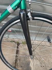 Bici da corsa, taglia 57 xL, la vendo per stato di abbandono in garage, ormai non la uso più da qualche tempo, la bici ha il difetto del sellino usurato, e la ruota posteriore ( funziona bene ma non è perfetta )ha i cuscinetti rumorosi, copertoni e camere d’aria nuove, davanti ho montato una 700 × 28 per comodità, in quanto poi lo usavo solo più per passeggiate, dietro una 700 × 25, cambio Shimano 600, la bici è stata completamente riverniciata le parti in carbonio sono in evidenza il telaio misto alluminio con forcelle e tiranti telaietto posteriore carbonio, molto leggera e filante, forse da ripulire un po’ e ingrassare prima della rimessa in uso, ma già così è ottima, Non mi ricordo la marca della bici( mi sembra sia GIOS) . Non spedisco, disponibile chiarimenti, se non siete interessati per cortesia non mi fate perdere tempo.