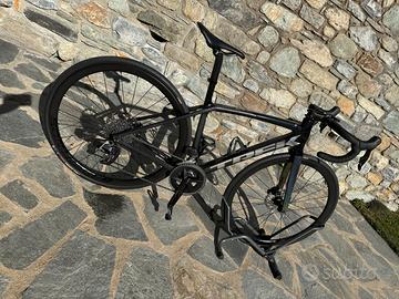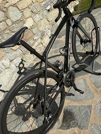 Telaio: Carbonio OCLV serie 500, leggero e aerodinamico, progettato per prestazioni in salita e velocità.