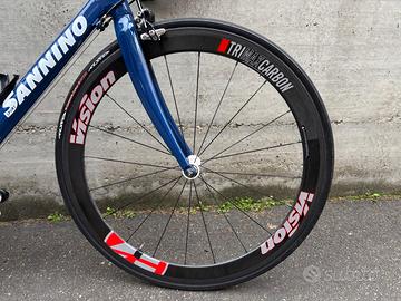 Bici da corsa artigianale taglia 54/55 Io sono alto 176 cm ed era perfetta Cambio campagnolo 10 velocità 50/34 e 11/30 Ruote in carbonio vision da 50mm con tubolari tufo