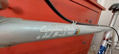 Vendo bicicletta da corsa Atala "Campione del Mondo 1982", in ottime condizioni, perfetta per collezionisti, amatori del vintage, per partecipare a eventi storici. Telaio in acciaio, misura 53. Gruppo originale Campagnolo "Nuovo Gran Sport" perfettamente funzionante