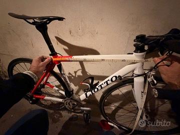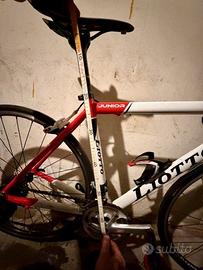 Bicicletta da corsa Liotto adatta a ragazzi categoria G3 e G4. Ruote da 26 pollici. Sella, attacco manubrio e reggisella carbonio. Senza pedali. Usata due stagioni. Sempre curata. Questa è una vera bici da corsa anche se ha le corrette proporzioni per un ragazzino.