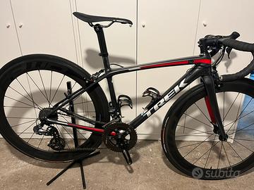 Vendo per passaggio categoria, bici da corsa Trek Emonda SL la piu piccola della sua categoria, adatta per ragazzi alti 1,40 m equipaggiata con rapporti da Categoria Esordienti. Manubrio largo 38 in carbonio, gruppo 11v ultegra elettronico con ceramic speed, movimento centrale cuscinetti ceramici, guarnitura con pidivelle 165 mm, ruote Fast Forward profilo 60 con tubolari da 25 nuovi. Piccoli segni di utilizzo,prezzo leggermente trattabile.