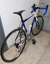 vendo bici da corsa per inutilizzo, taglia 56 praticamente nuova, telaio in alluminio leggero con forcella e sella in carbonio, gruppo Shimano a 27 marce, nastro manubrio nuovo e gomme nuove.