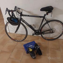 Vendo per inutilizzo bici da corsa, telaio in alluminio e forcella in carbonio. La bici è stata usata pochissime volte, il prezzo è trattabile. Con l’acquisto regalo scarpe per bici marca DEKO tg.44.