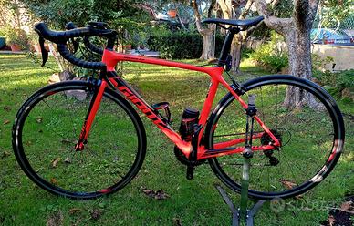Vendo bici da corsa Giant Advanced , monta gruppo completo Shimano 105. Telaio in carbonio , ruote tubeless . Bici in ottime condizioni