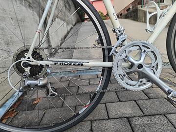 - Telaio: acciaio, geometria classica anni '90/2000, con passaggio cavi esterno e saldature visibili.