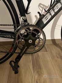 Vendo bici da corsa Bianchi con telaio in carbonio e gruppo Campagnolo a 10 velocità, taglia 54, ideale per ciclisti tra 175 e 180 cm.