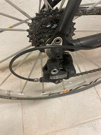 Bici da corsa Bianchi, carbonio integrale, taglia M/L (io sono 178,5cm) Misure: -distanza tubo-piantone 52cm -tubo orizzontale 52cm -gruppo: Campagnolo Xenon 10v -guarnitura compact 50/34, cassetta 10v con scala 12-25 -impianto frenante: Shimano Ultegra -pedali Look Bici leggerissima, nessun difetto