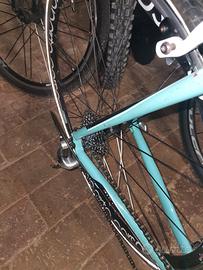 Cambio campagnolo, telaio in alluminio, forcella in carbonio. Alu campagnolo Veloce mix 10v compact. Appena cambiati pignoni e catena.