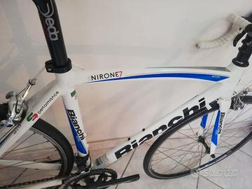Cedo per inutilizzo bellissima bici da corsa Bianchi. Come si evince dalle foto, questa bdc è pari al nuovo, condizione che potrete constatare di persona. Nessuna caduta, nessun graffio, sempre tenuta in casa. Non ha bisogno di nessuna manutenzione, perfetta in ogni sua parte, pronta all'uso. - - Caratteristiche principali - - -Telaio: Bianchi ALUHYDRO idroformato, molto resistente e rigido, con design semi-sloping che garantisce maggiore leggerezza e reattività, offrendo vantaggi soprattutto in salita. -Forcella: FC09 Carbon – FN11 Kvid -Serie sterzo: Pro Control Fork conico, ovvero con diametri diversi tra la parte superiore ed inferiore, progettato per offrire una maggiore rigidità e stabilità alla bicicletta. -Manubrio: Bianchi Reparto Corse - da 42 cm. -Attacco manubrio: Bianchi Reparto Corse - lunghezza 105 mm. -Comandi: ErgoPower Shimano. -Guarnitura: FSA tempo – Compact 50/34 -Cambio: Shimano. -Cassetta pignoni: Shimano 12/28 -Reggisella: Deda Elementi Superzero in Carbonio. -Sella: Velo Senso Miles con scarico anti-prostatite e rail in cromo e molibdeno, leggerissima col suo peso di soli 180 grami. -Freni: Shimano DuraAce cromati, con sistema Caliper. -Cerchi: Race Attack 3.0 -Copertoncini: Continental Ultra Sport. -Catena e pacco pignoni nuovi. Per qualsiasi ulteriore informazione non esitate a contattarmi. Garantita massima serietà e correttezza.
