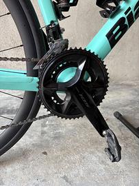 Bianchi sprint, cambio 105 shimano, utilizzata quasi esclusivamente sui rulli. Comprata ad ottobre 2025, poco più di mille chilometri. Taglia 55