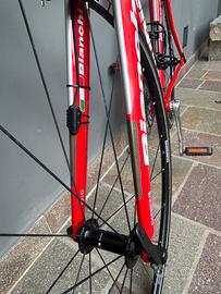 Vendo Bici da corsa Bianchi Via Nirone 7, taglia 59, la bici e in alluminio ma con forcella anteriore in carbonio, la bici è in condizioni perfette: monta cambio Shimano Tiagra, pastiglie dei freni anteriori e posteriori nuove, copertoni anteriore e posteriore nuovo, nastri manubrio nero nuovo.