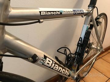 Vendo bici da corsa Bianchi Via Nirone 7 edizione Team Liquigas, telaio in alluminio, taglia M, forcella in carbonio, gruppo Campagnolo, sella Fizik originale.