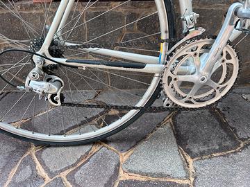 Vendo per inutilizzo bici da corsa bianchi in ottime condizioni cambio campagnolo mirage . Poco utilizzata vendo insieme a pedali normali come da foto e ricambio pedali con attacchi.