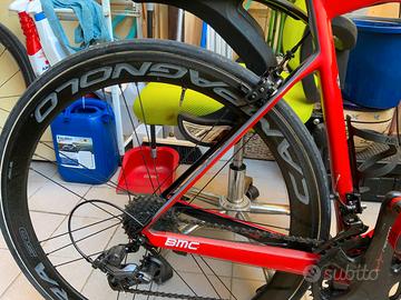 Bici da corsa su strada telaio BMC. Taglia 54. Gruppo Campagnolo. Sella FI'ZIK Antares. Cerchi Campagnolo