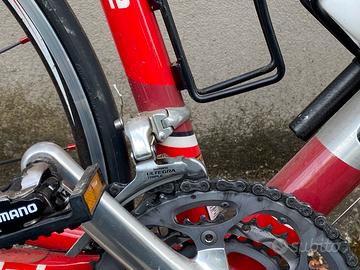 Bici da corsa Canondale in alluminio aeronautico con forcella anteriore in carbonio, guarnitura shimano ultegra 24 marce, doppio porta borraccia, luce posteriore, pota attrezzi sottosella, sella confort proteggi prostata e mini pompa d’emergenza. Volendo regalo conta chilometri VDO, ma ha attacco rotto (fatto di gomma e con il caldo e il freddo quando ho staccato il computerino si è rotta la gomma).