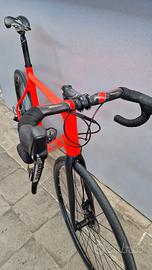 Telaio, forcella, manubrio e reggisella in carbonio. Montata con gruppo completo SRAM rival, cambio 2x11, freni a disco idraulici.
