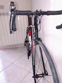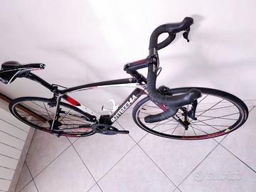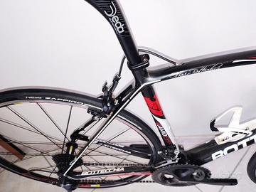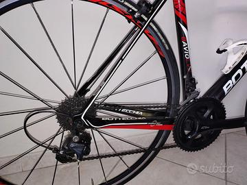 Bellissima bici da corsa Bottecchia 8Avio Evo interamente in carbonio. Come si evince dalle foto, questa bdc è pari al nuovo, condizione che potrete constatare di persona. Nessuna caduta, nessun graffio, sempre tenuta in casa. Non ha bisogno di nessuna manutenzione, perfetta in ogni sua parte, pronta all'uso. - - Caratteristiche principali - - -Telaio: Carbonio Toray UD asimmetrico Reparto Corse - HMF (fibre ad alto modulo) con design semi-sloping molto resistente e rigido, con sistema HPG, che bilancia in maniera ottimale prestazioni e comfort. Realizzato con tecnologia DMMT a doppio stampo, che permette di creare il tubo di sterzo, il tubo orizzontale e il tubo obliquo in un unico pezzo, e conferisce al telaio maggiore resistenza ed un peso inferiore, aumentandone la resistenza strutturale. Ciò garantisce maggiore leggerezza e reattività, offrendo vantaggi soprattutto in salita. - Carro posteriore: compatto con i posteriori ultra slim, è stato realizzato per assorbire le sollecitazioni sul posteriore aumentandone il comfort soprattutto sulle lunghe distanze e mantenendo intatte stabilità e reattività senza disperdere l’energia della pedalata. -Forcella: Carbonio UD monoscocca Tapered con sistema FMC -Serie sterzo: Pro Control Fork conico con sistema THT, ovvero con diametri diversi tra la parte superiore e inferiore, progettato per offrire una maggiore rigidità, stabilità e sicurezza alla bicicletta. -Manubrio: FSA Compact da 42 cm. -Attacco manubrio: Syncros RR2.0 da 115 mm. -Leve comandi: ErgoPower Shimano Ultegra. -Cassetta pignoni Shimano Ultegra, con ampia gamma di rapportatura, adatta sia a sostenere elevate velocità, che per salite ripide. -Cambio: Shimano Ultegra ad 11 velocità. -Reggisella: DEDA SuperZero in carbonio. -Sella: Prologo molto leggera e comoda. -Freni: Shimano Ultegra con sistema Caliper. -Cerchi: Mavic con raggi piatti, leggeri, aerodinamici e molto scorrevoli. -Catena e pacco pignoni nuovi, così come tutta la bici. Per qualsiasi ulteri