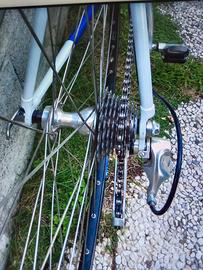 Telaio acciaio n.54 freni a tampone su cerchione pedali con aggancio camlock cambio Campagnolo a 9 rapporti e guarnitura a tre rapporti.copertoncini nuovi mai usati..