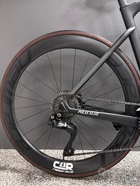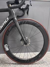 Megamo pulse elite, taglia M, gruppo shimano 105 di2 12v, guarnitura ultegra, rapporti 50/34 11/30, sella italia, ruote new race carbonio.