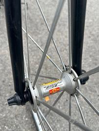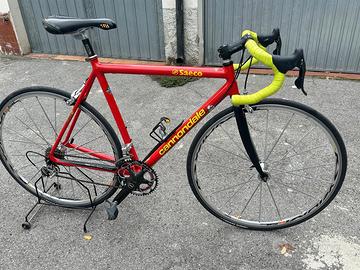 bici in ottime condizioni con gruppo chorus 10 v in carbonio, con catena e corone nuovi. Nuovi anche i copertoni,i paramani degli ergopower i pattini freno ed il reggisella, taglia 54, se interessa oltre alla forcella in carbonio cedo quella originale cannondale in acciaio