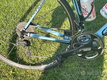 Vendo bici cannondale synapse interamente in carbonio (telaio e forcelle) taglia 56 (io sono alto 1,75 m. Si allega tabella geometrie taglie nelle foto). Bici tenuta con molta cura e che non presenta ammaccature.